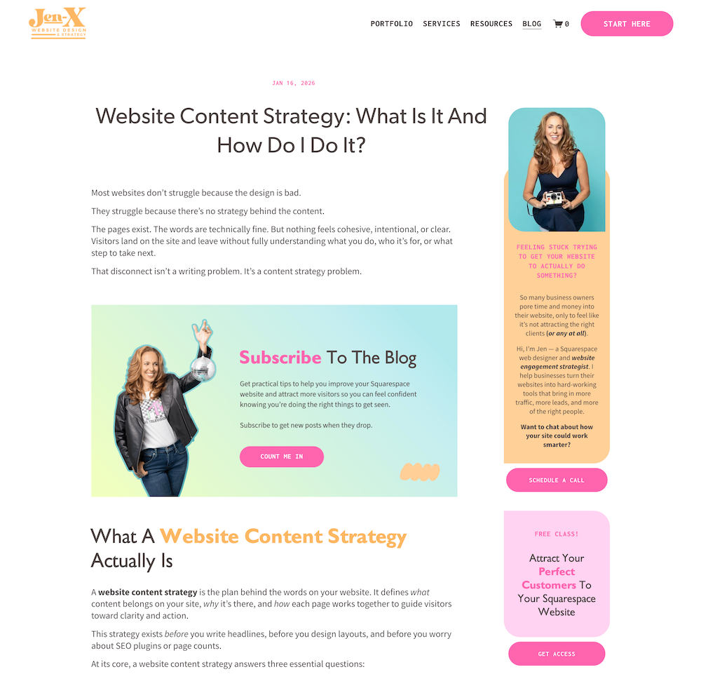 On a blog, the primary content does the heavy lifting. The sidebar plays a supporting role by giving readers a place to go next once they’re already engaged. This might include related posts, a relevant resource, or a brief reminder of what the site offers.