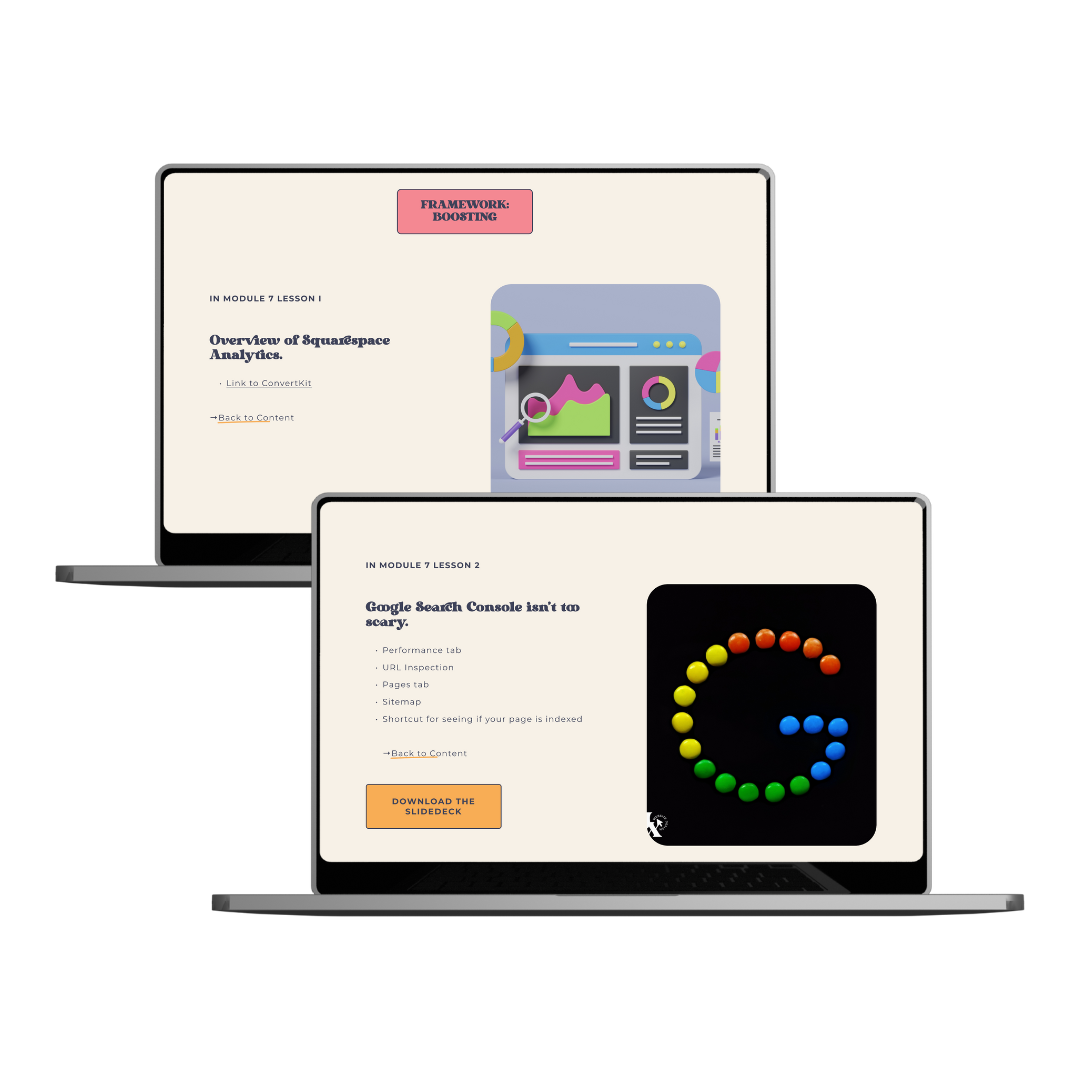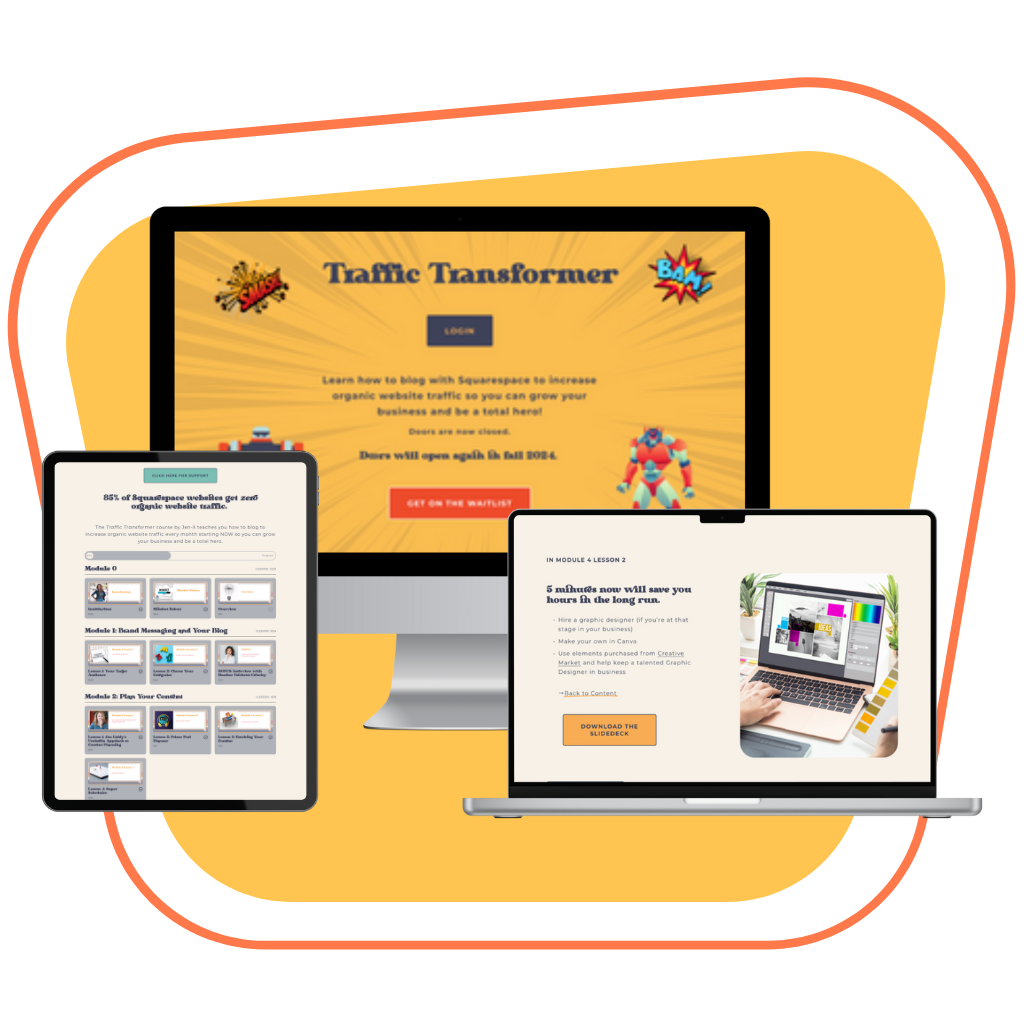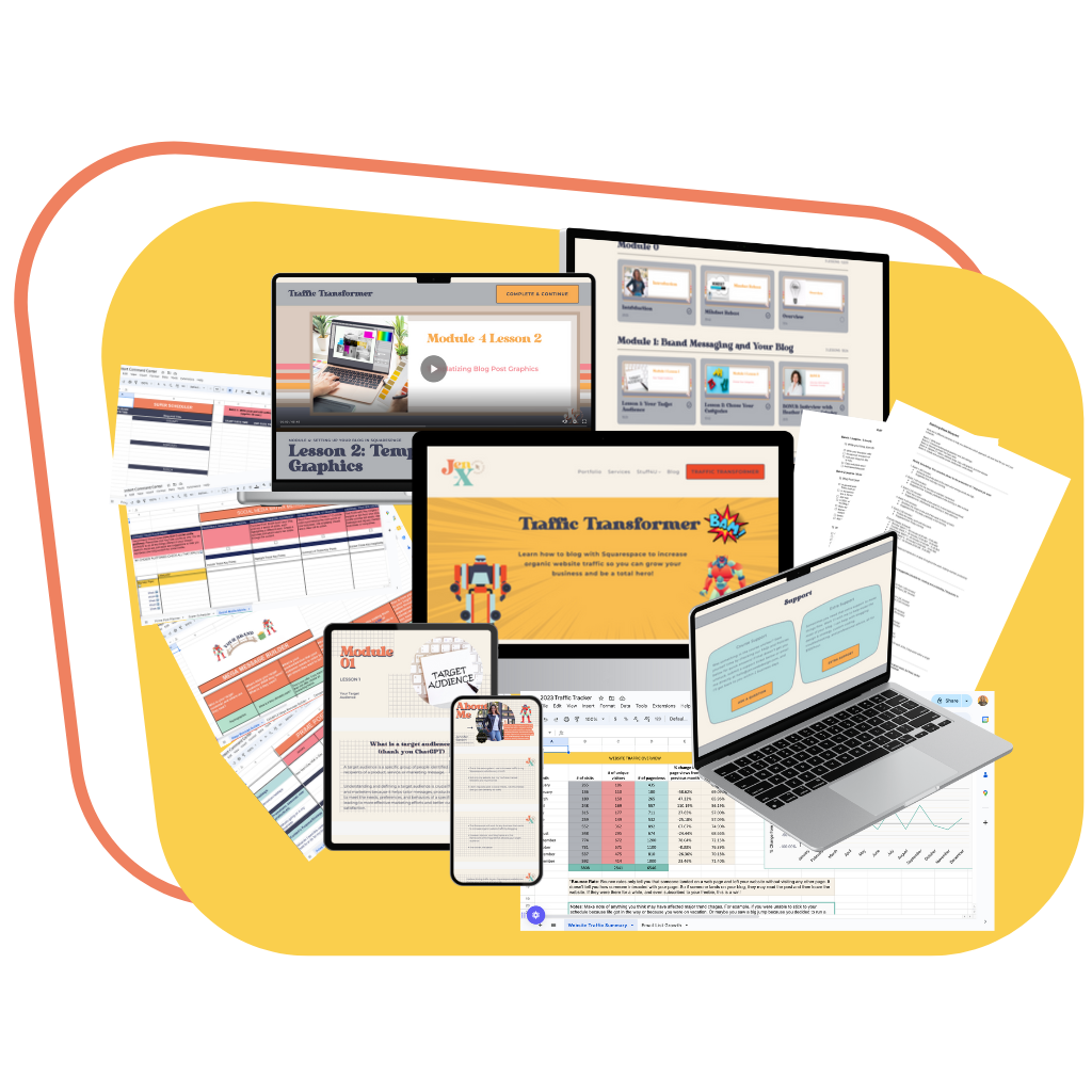 The Traffic Transformer Framework ($3,000 value) teaches you how to blog on your Squarespace website to align with your business and highlight you as an expert so you can consistently attract your target customers/clients and grow your business.