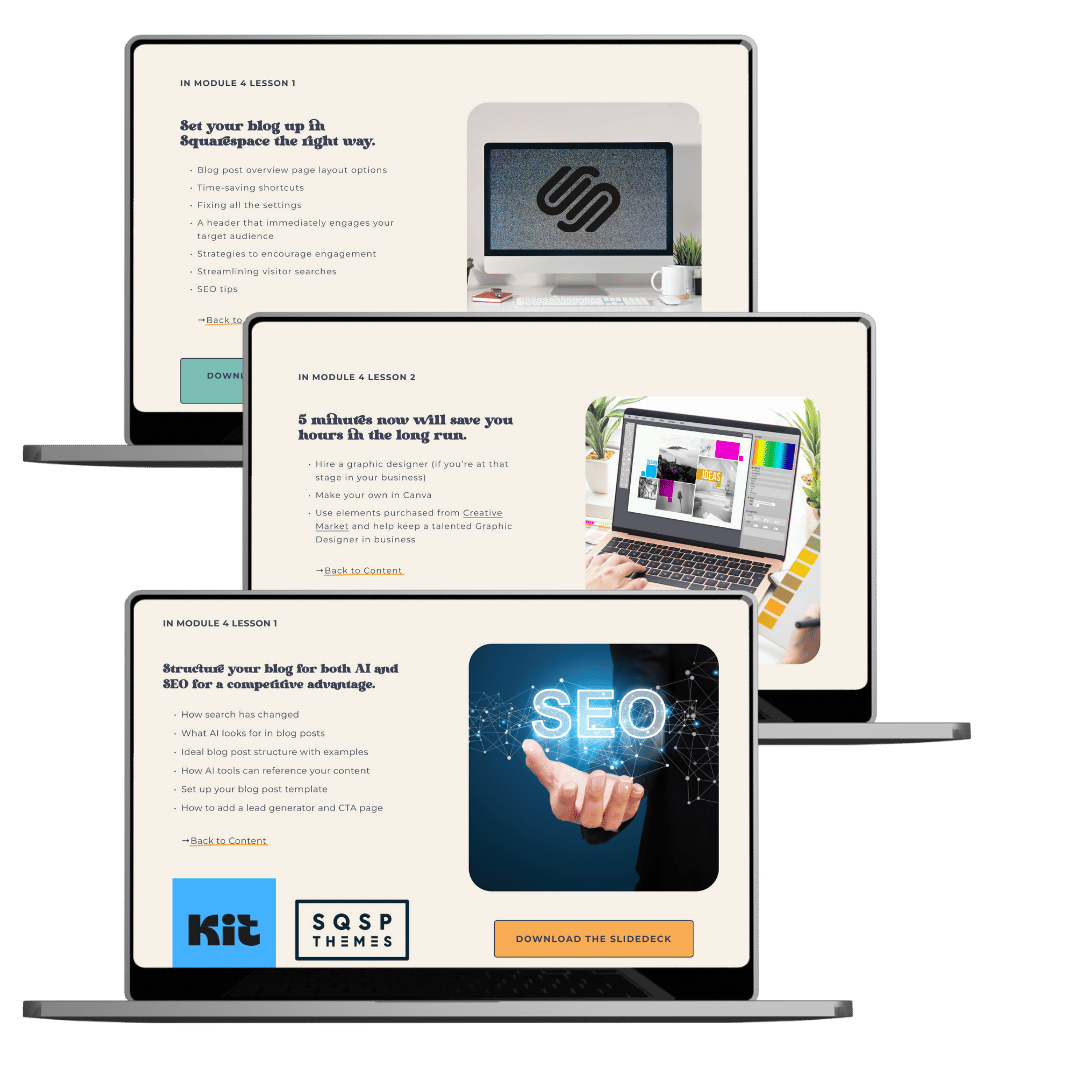 I'm a Squarespace web designer, website engagement strategist, and blogging expert who teaches Squarespacers like you how to increase organic website traffic so you can transform your business into the one you’ve always dreamed of.